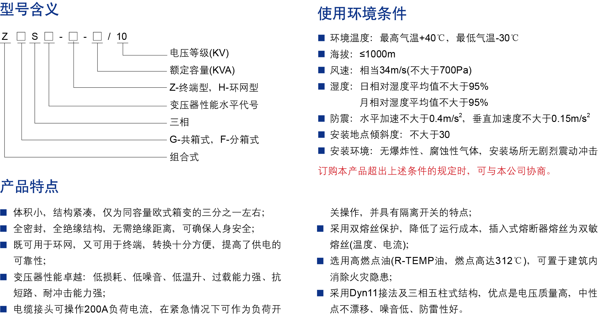 组合变压器,俗称美式箱变,具有供电可靠、结构合理、安装迅速、灵活、操作方便、体积小等卓越性能,广泛用于工业园区、居民小区、商业中心、城市道路以及高层建筑等各种场所。该类产品与目前国内生产的欧式箱变不同在于:美式箱变是将变压器铁心、高压负荷开关、保护用熔断等设备一体化设计、放置于同一油箱中,因而体积较小。