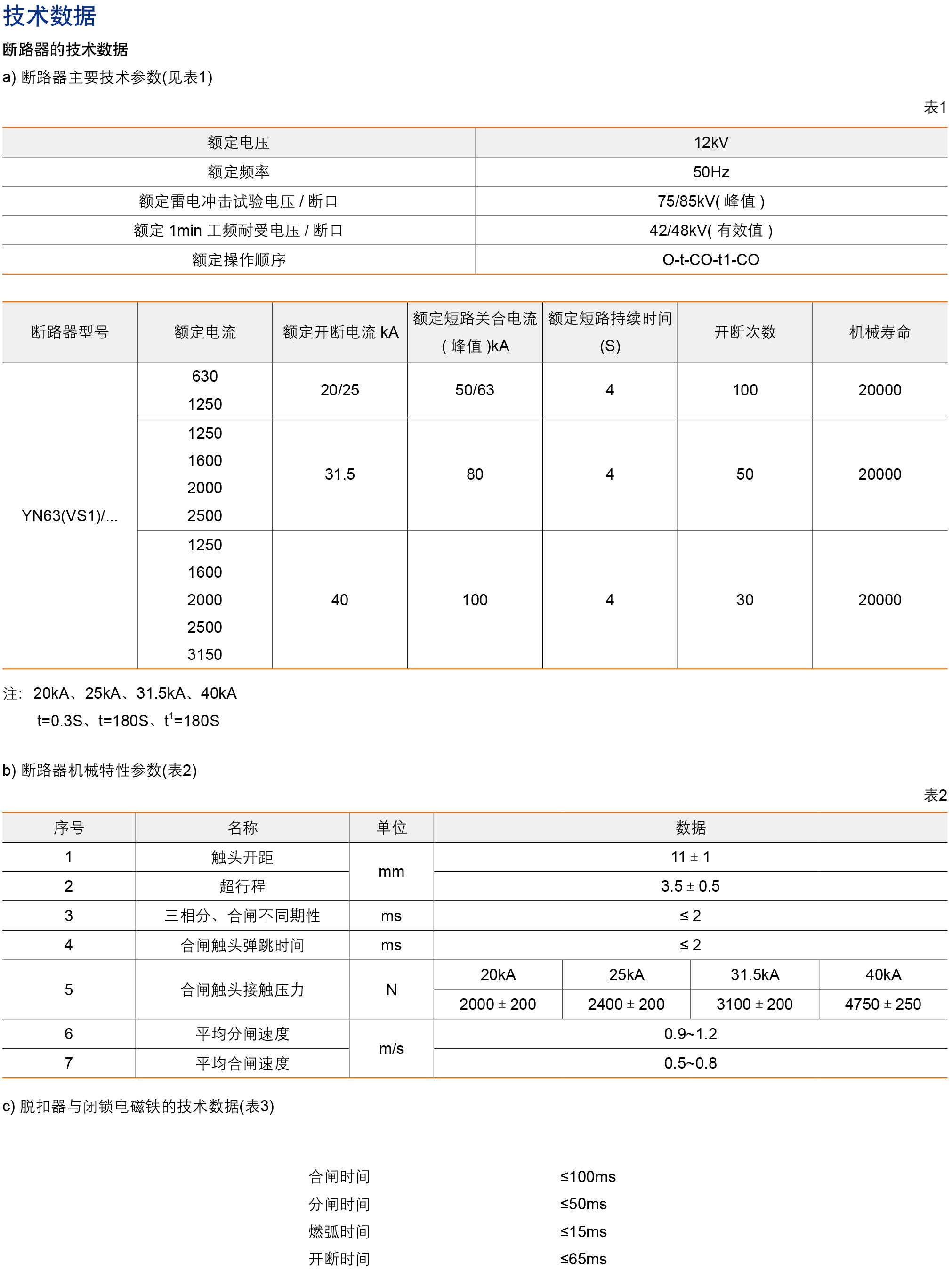 YN63(VS1)型户内高压真空断路器是三相交流50Hz,额定电压为7.2~12kV户内高压开关设备。断路器符合我国国家标准GB/T 1984《高压交流断路器》、DL/T403《12-40.5kV高压高压真空断路器订货技术条件》、GB/T11022《高压交流开关设备和控制设备标准的共用技术要求》和相关的IEC60694、IEC62271标准要求,并具有可靠的联锁功能。 可进行频繁的操作,具有多次开断和快速重合闸的能力。断路器设计成前后分装结构,既可以作为固定安装的单元,也可与底盘车配装作单独手车使用。